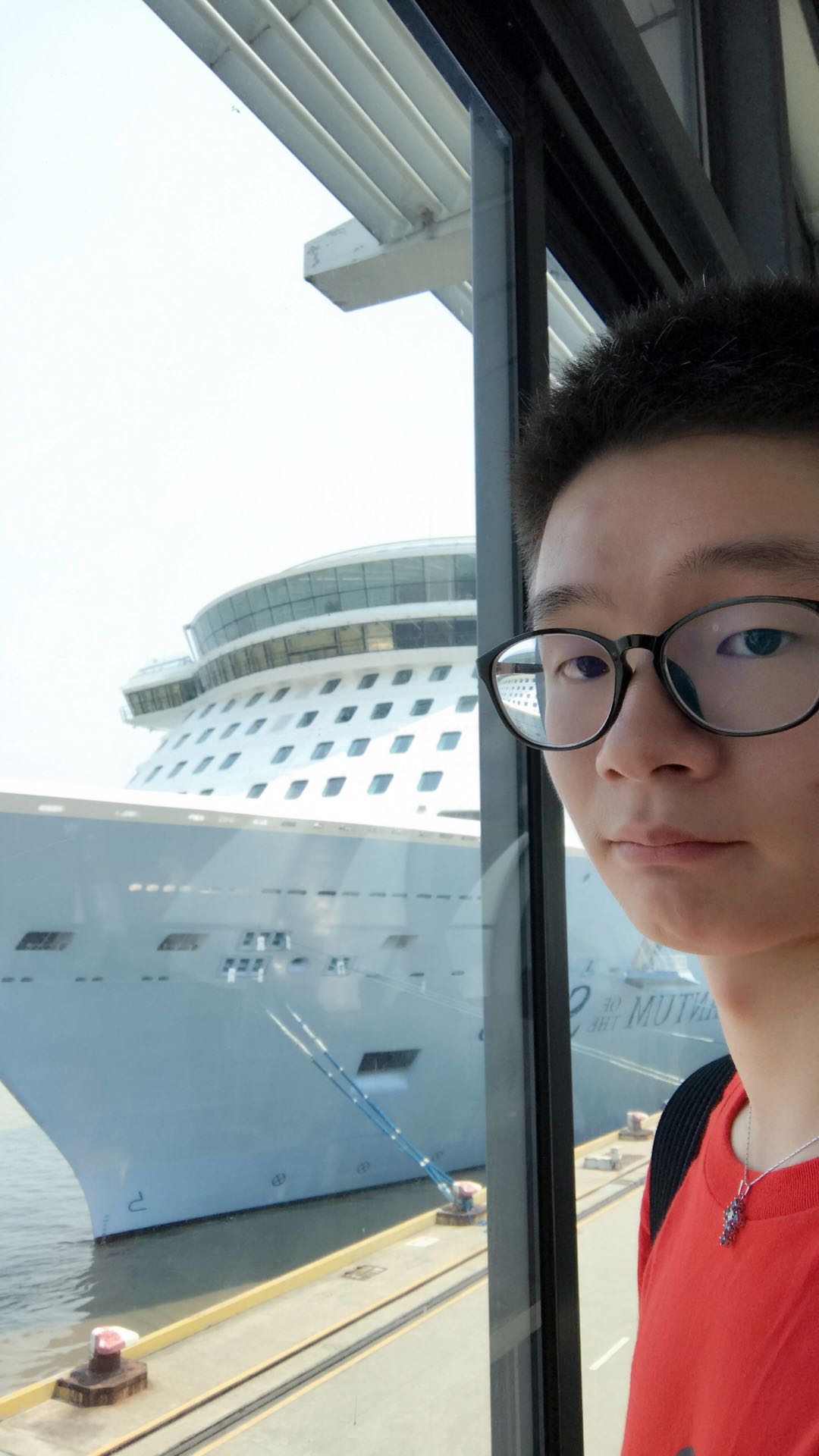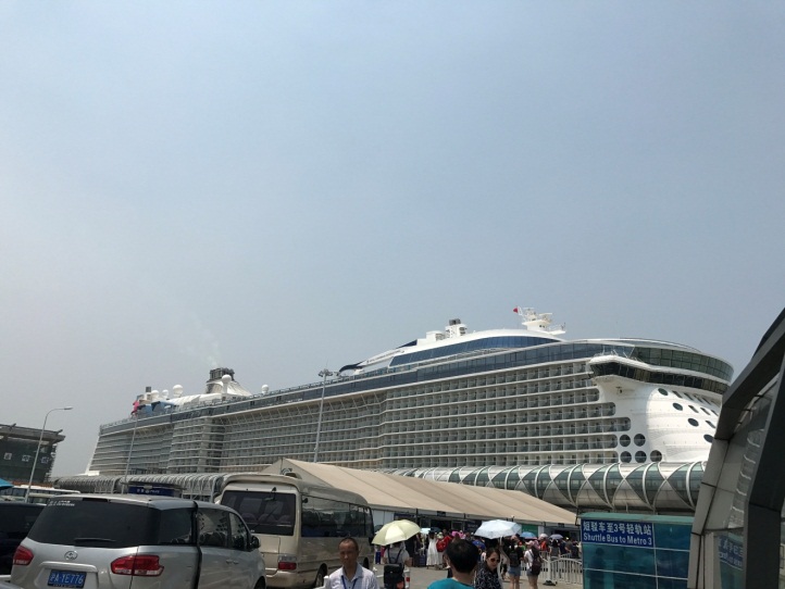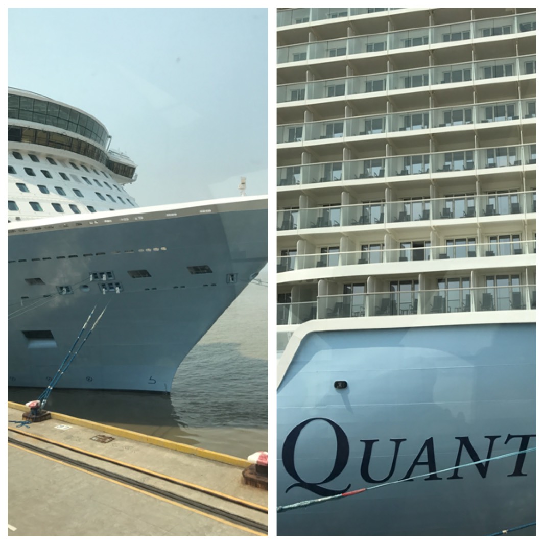 我因为不在上海,去量子号停靠的上海吴淞口国际邮轮港很花了一番周折。飞机落地已是傍晚,在港口附近的酒店住了一晚之后,第二天早晨准时出门。