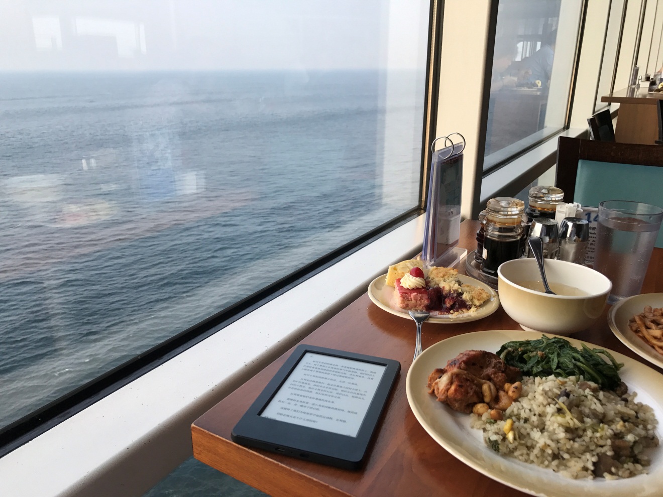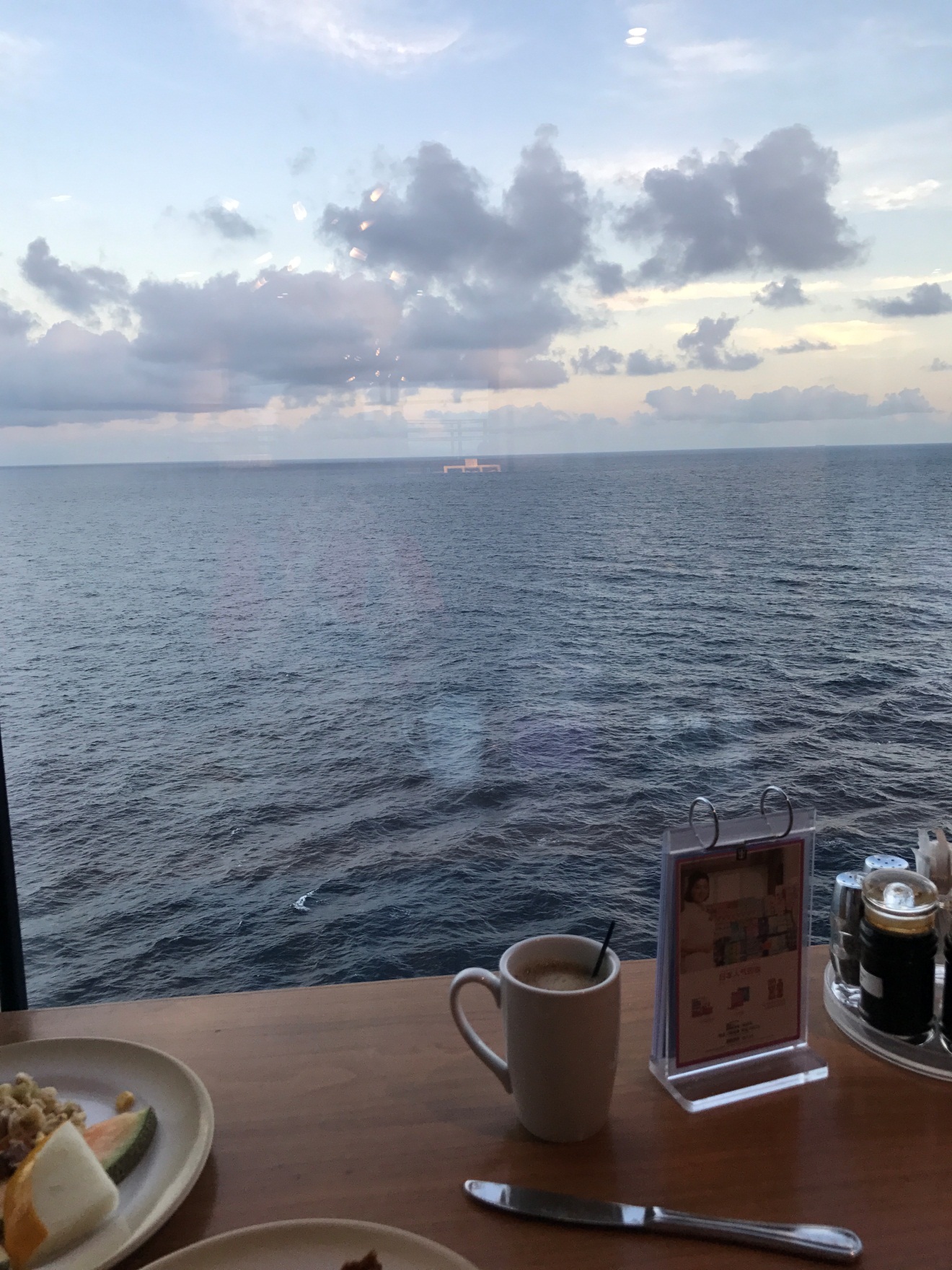 量子号上有一间超级大的帆船自助餐厅,早中晚餐提供超级多的美食,而最让我心旷神怡的是餐厅里那一圈靠窗的小方桌。