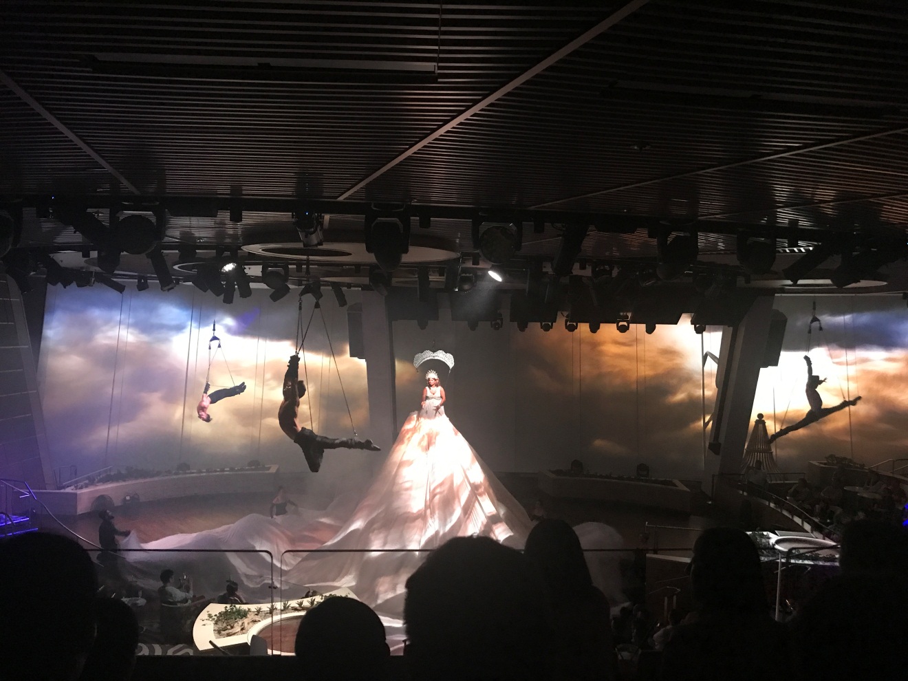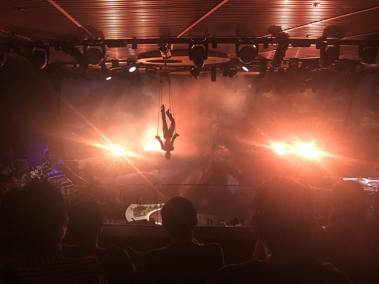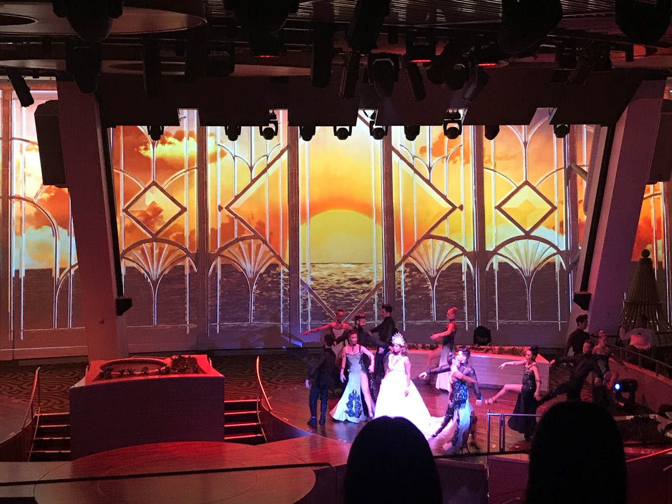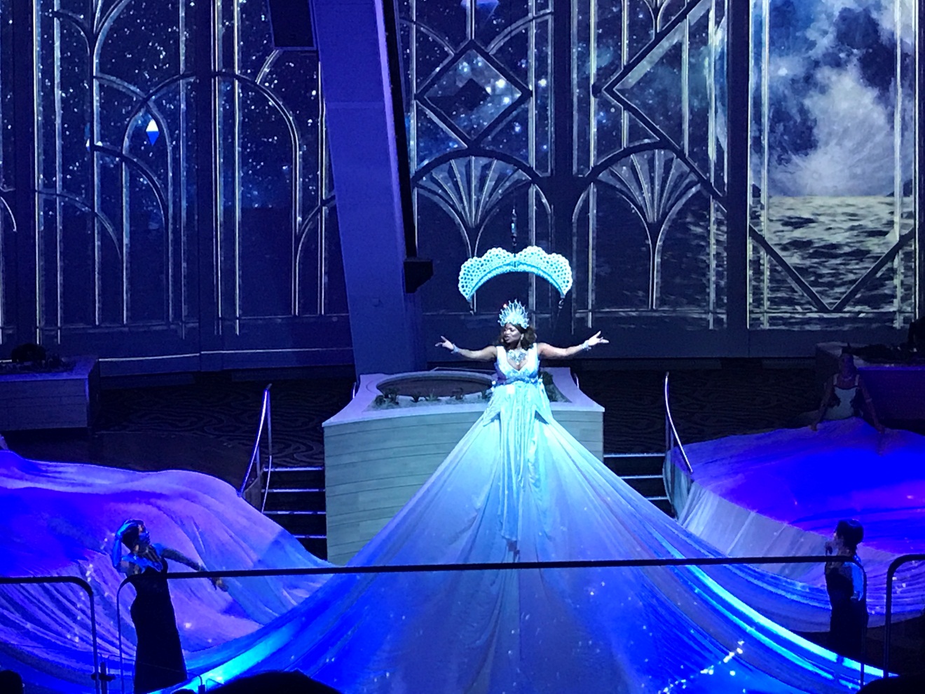 晚上七点,表演大厅已经排起了长长的队伍,这里真的要提醒大家,上船赶紧预约座位,看完绝对不后悔!这台表演的舞美灯光是超一流,演员的表现力也超强。当然,我最喜欢的还是女演员动人的歌声。当台上的演员和台下的观众的互动,我也情不自禁的欢呼起来。