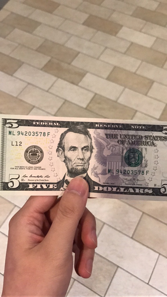 刮刮乐赢的五美元。