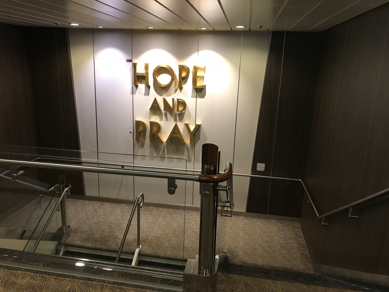 最后一天,我既没有一头钻进餐厅吃个痛快,也没有去甲板的泳池好好游个泳,我拿着手机听着音乐,把这艘自己呆了五天的大船好好走了一遍。