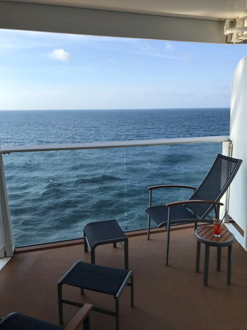 碧蓝的天和海,明媚得不像话的阳光,量子号缓缓向前,卷起的浪带来潮水的香气。打开阳台的门,海风扑面而来,外面温度确实很高,可是一杯冰凉的果汁让我瞬间清醒。